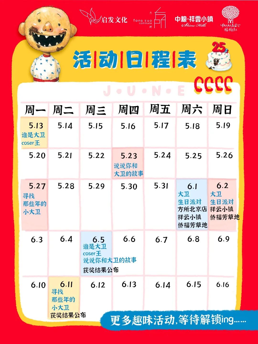 趣味故事会 /小型剧场 收看大卫·香农特别庆祝视频 好玩的手工DIY活动 请大卫人偶盖章打卡 和大卫人偶一起拍照 获取超萌大卫周边