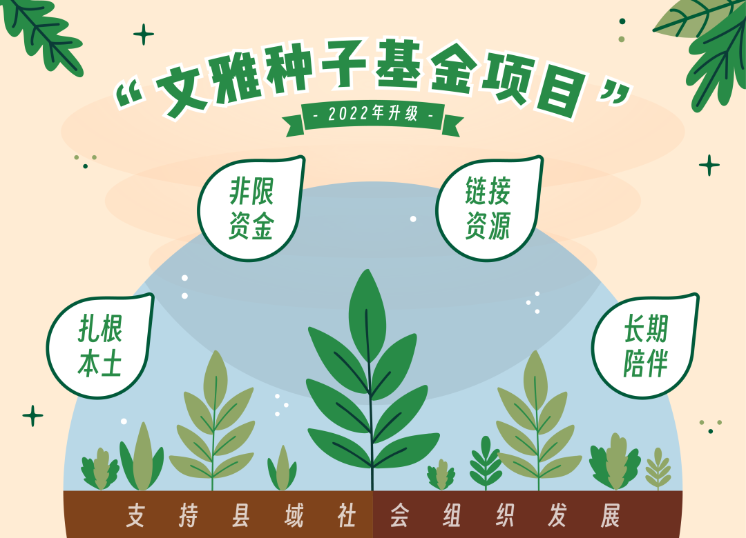 2022年,基金会升级发布文雅种子基金项目,并将其视为长期战略性项目,通过机构资助,关注机构团队及运营管理能力的提升。我们着眼于扎根并服务于本土、处于发展或成熟期的县域社会组织,希望通过提供长期非限定资金、链接学习资源及支持平台,陪伴组织健康发展。项目发布以来,已有12家县域社会组织入选。