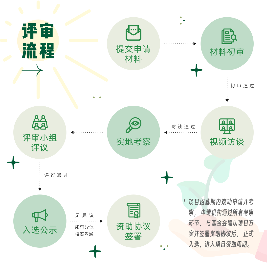 基金会将在收到完整申请资料后2周内进行初步反馈,所有申请将由基金会项目团队及项目评审小组进行考察评审。
