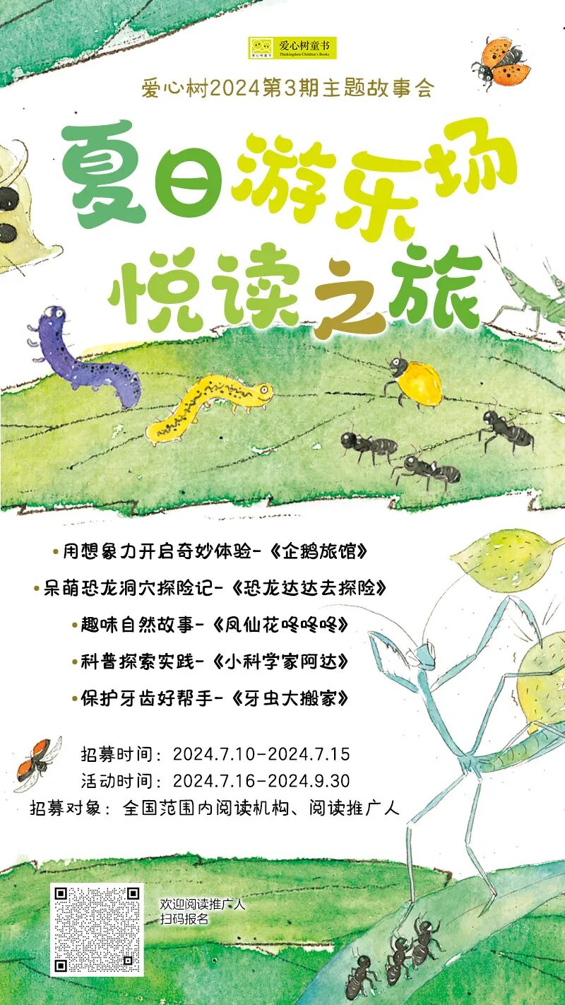 新一期的主题故事会又开启啦,爱心树向全国童书馆、阅读推广人发起邀请,一起到夏日游乐场畅快悦读吧!