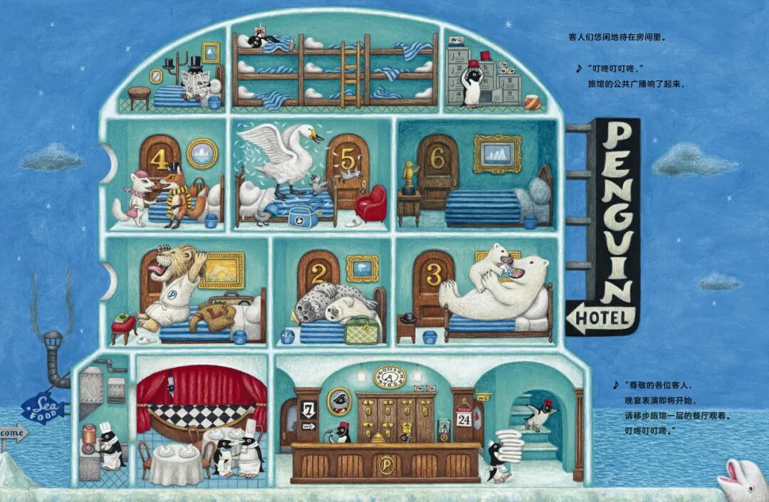 《企鹅旅馆》是一本能玩线索大发现的萌系故事绘本,牛窪良太的彩铅画风细腻惹眼,复古精致,场景和设定神还原,满满的小彩蛋和隐藏线索。本期故事会,大家一起住进《企鹅旅馆》,用想象力开启一场奇妙体验,听故事的同时,探索旅馆里的角角落落,学习企鹅冷知识,一起做小企鹅员工,挑战开一间属于自己的企鹅旅馆。
