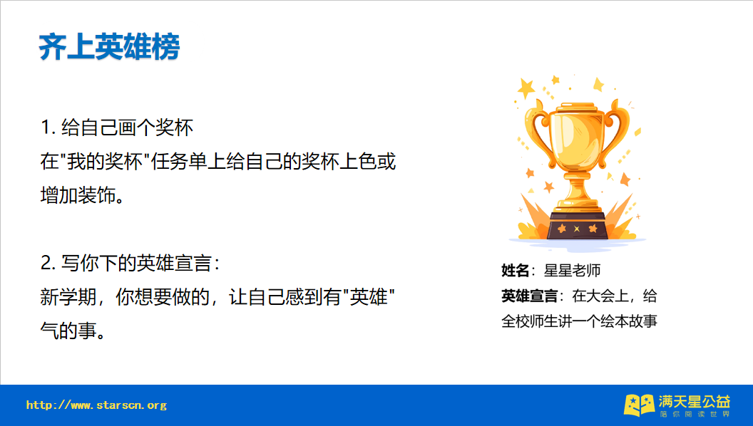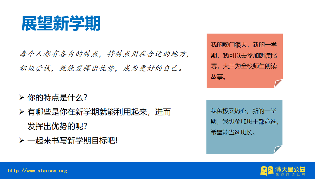 “满天星公益”为全力推广阅读,助力社会培育阅读氛围,在每学期伊始,向全国阅读推广伙伴推出趣味强、易上手的【开学第一课】主题阅读课(内含教案和课件PPT)。