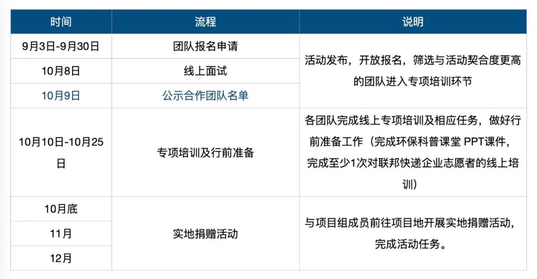 活动经费支持:项目组为全程参与并顺利结项的团队提供1000元的经费支持,用于团队参与两天一晚捐赠行程所产生的志愿者补贴;项目组将另外承担捐赠行程产生的交通及住宿费用。