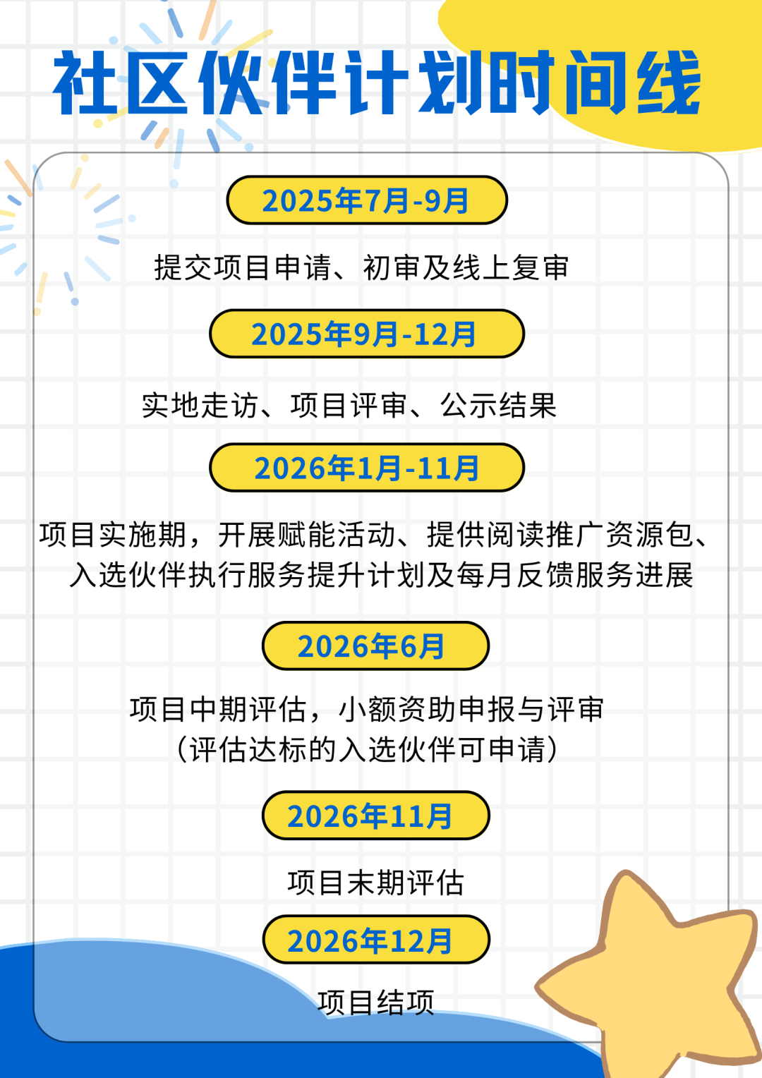 【阅同行-社区阅读推广伙伴计划】(简称“社区伙伴计划”)是满天星公益发起的社区阅读行业合作项目,以省份或特定地理区域为单位,聚焦于社区儿童阅读推广领域,寻找区域内具有发展潜力、关注流动/留守儿童教育、从事非营利性社区儿童阅读推广服务的伙伴,并通过深度支持与陪伴的方式,如阅读推广人赋能与发展、阅读推广资源包、小额资助、品牌项目合作等,提升“社区伙伴”的阅读推广服务能力,共同致力于提高所在社区的儿童阅读品质。