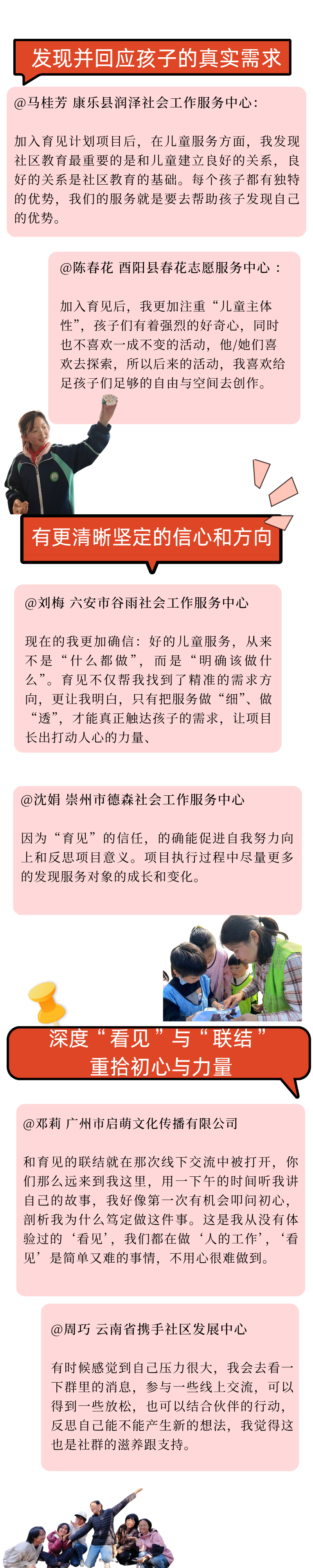 现在,我们诚挚邀请35位新伙伴加入2026“育见”社群——我们始终相信:一线伙伴是离孩子最近的“土壤”和“大树”,你们得到更多支持,孩子才能得到更好的陪伴和成长。