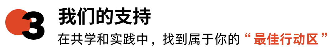 我们将在共学社群中,向所有伙伴开放 “实践基金” 邀请。采取双向选择机制,支持伙伴突破资源与认知的限制,将在共学中的收获落地为从0到1的探索,或实现从1到2的迭代升级,用行动突破现有卡点。