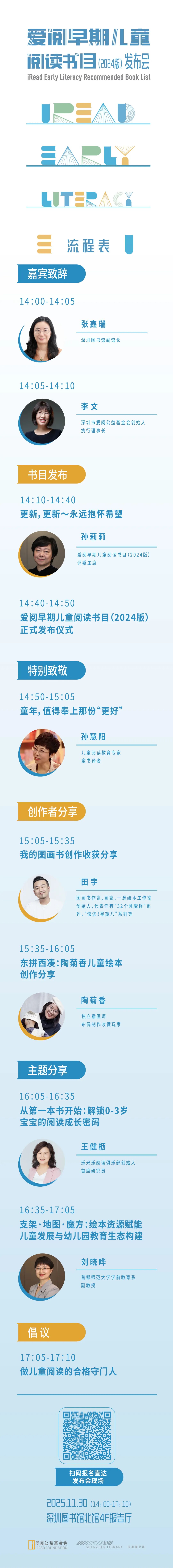 深圳市爱阅公益基金会与深圳图书馆联合主办的“从这里开始:《爱阅早期儿童阅读书目(2024版)》发布会”,将于2025年11月30日下午,在深圳图书馆(北馆)隆重举行。