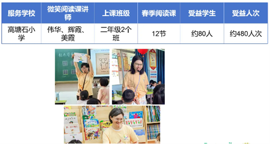 - 2025年春季学期,讲师团队深入4所民办及城中村学校,为11个班级带去162节专业阅读课,让近千名流动儿童受益。