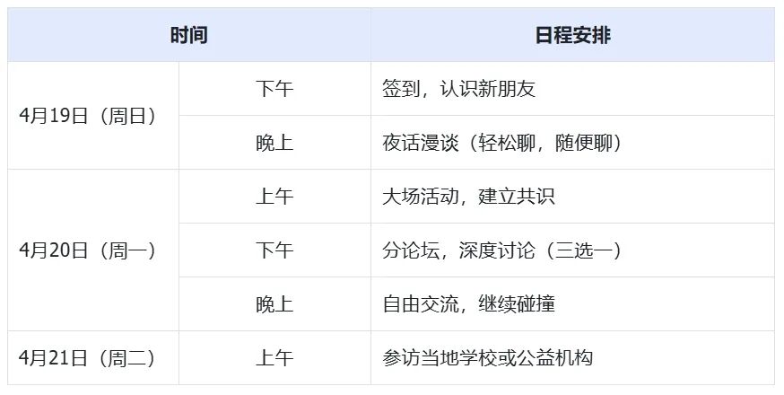 费用说明:活动为公益性质,参会者需自行承担交通和住宿。