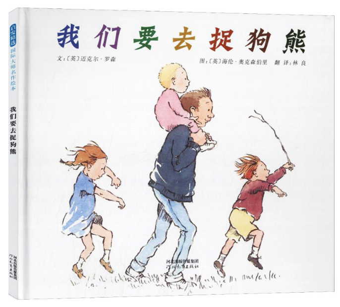 爸爸带领一家人去捉狗熊,他们一路经过了草地、河流、树林和暴风雪,最后终于找到了狗熊,但是,狗熊一瞪眼,他们吓得就开始往回跑,又经过了暴风雪、树林、河流和草地,最后跑回了家,躲进被子里。