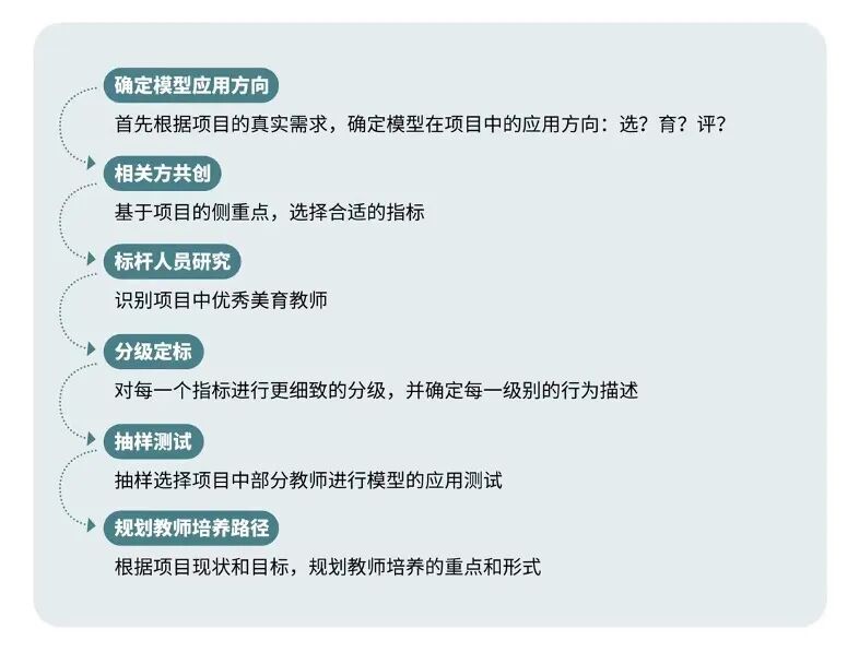 由美育网络发起的乡村美育教师能力素质模型1.0研究项目,于2020年5月启动研究及实践验证,整个项目历时近2年。项目组主要通过以下几个过程完成整个建模: