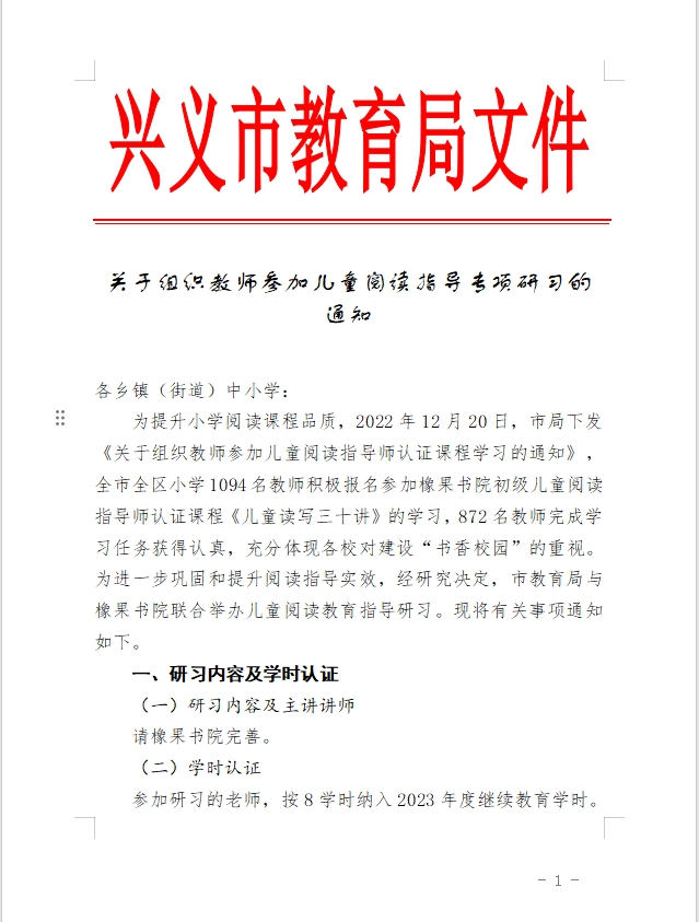 兴义市“儿童阅读指导师”教师研习营