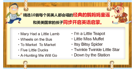 这套书由国际著名语言学家编写,采用3R幼儿英语启蒙教学法(Rhythm节奏、Rhyme韵律、Repetition复现),通过对童谣的形式帮助孩子顺利实现语感启蒙。