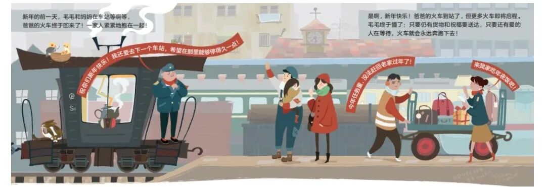 《我的爸爸开火车》看起来是讲火车和旅行,内核和线索却是“家庭”。有家的旅程叫旅行,没有家是流浪。我们希望毛毛长大到能去探索世界的那天,她也许有时不知道下一站去哪,但她永远都记得回程票的地址——家。