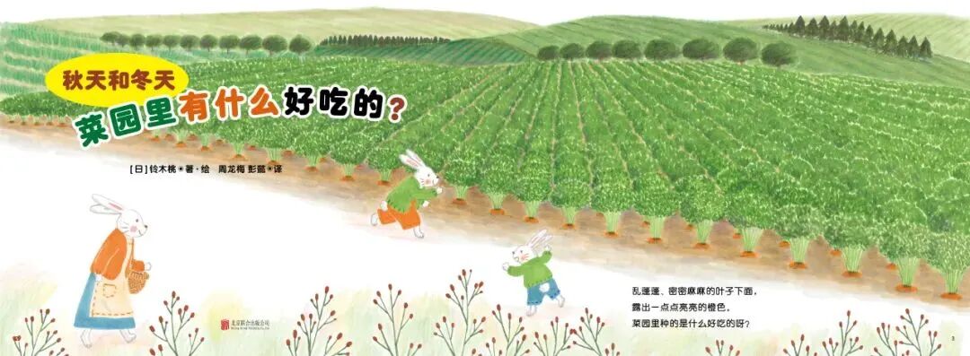 在《菜园里有什么好吃的?秋天和冬天》里,你能够观察胡萝卜、红薯、洋葱等蔬菜从成长到收获的全过程,跟小动物们一起品尝美味佳肴。