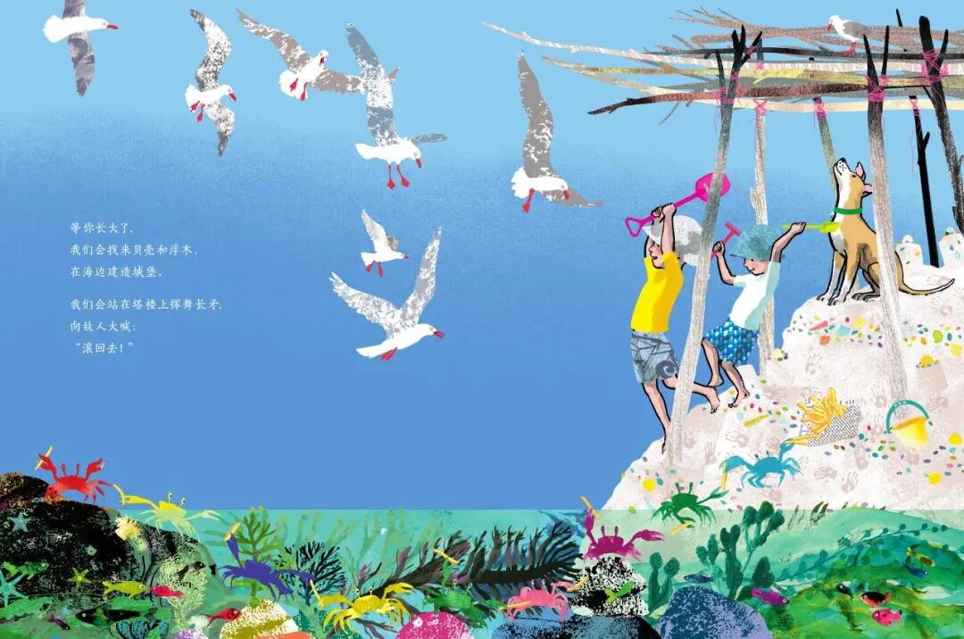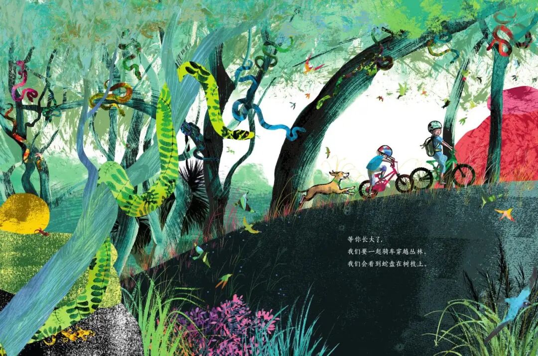 小弟弟,我迫不及待地等你长大。想象一下吧,未来等着我们的那些冒险——等你长大了,我们要一起骑车穿越丛林;等你长大了,我们会在海边建造城堡,我们会站在塔楼上挥舞长矛,向敌人大声呐喊;等你再长大一些,我们将驾着木船出海,去看巨鲸喷水、大熊捕鱼、冰山漂浮;我们要在雪地上搭帐篷,要在篝火旁讲幽灵船和神秘岛的故事;第二天,我们将继续探险,驾驶木船深入大海,驶向远方的地平线……