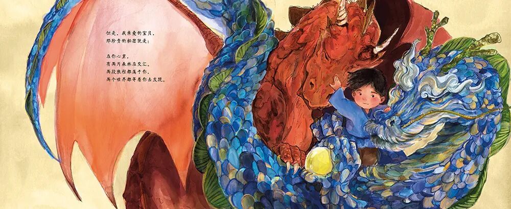 经历过两段寻龙之旅后,妈妈告诉小男孩:这两座森林里的龙和相关事物,都是他内心成长力量的源泉,这两个世界都等待他去探索。