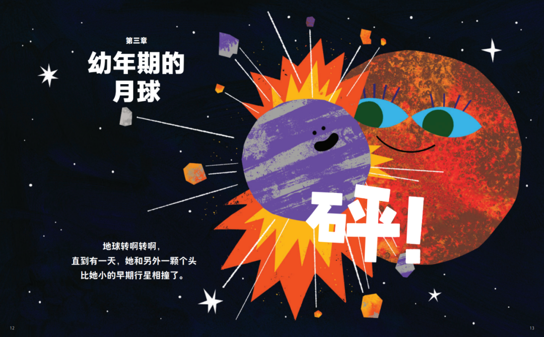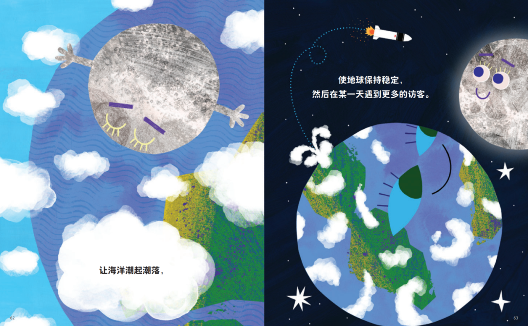 《跟着云朵去旅行》系列作品。跟着月球绕地旅行,了解环形山和月相变化等奥秘。