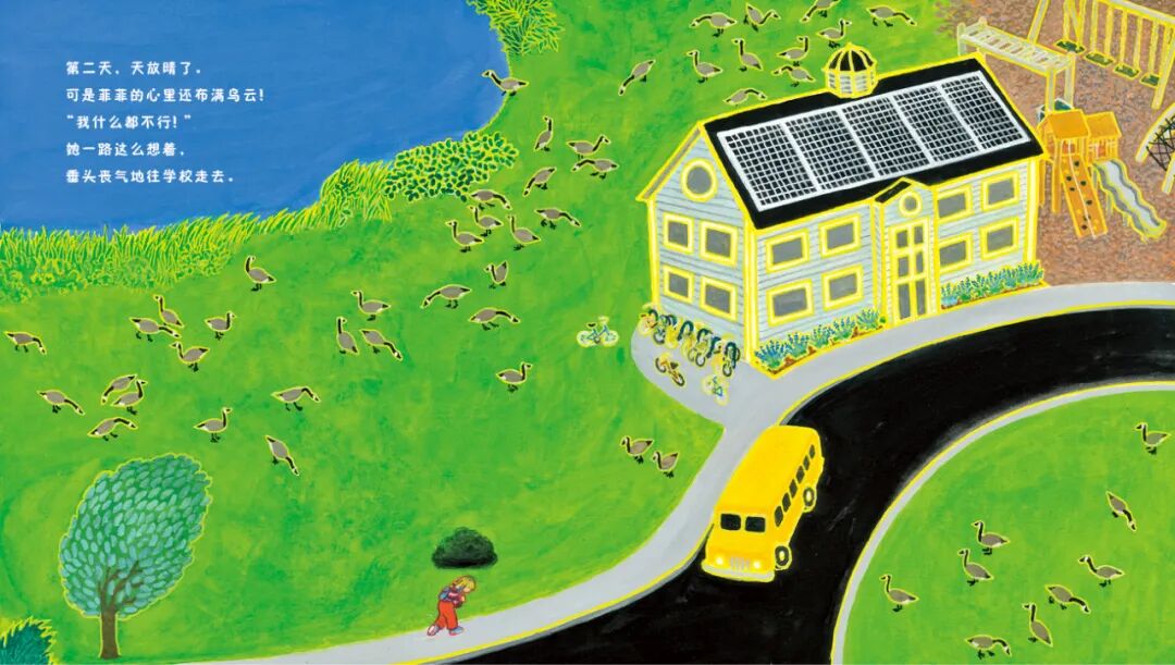 在这个故事里,我们熟悉的角色,金发圆脸的可爱女孩菲菲因为小小的失败,陷入自信危机——我是不是很笨?我是不是什么都做不好?