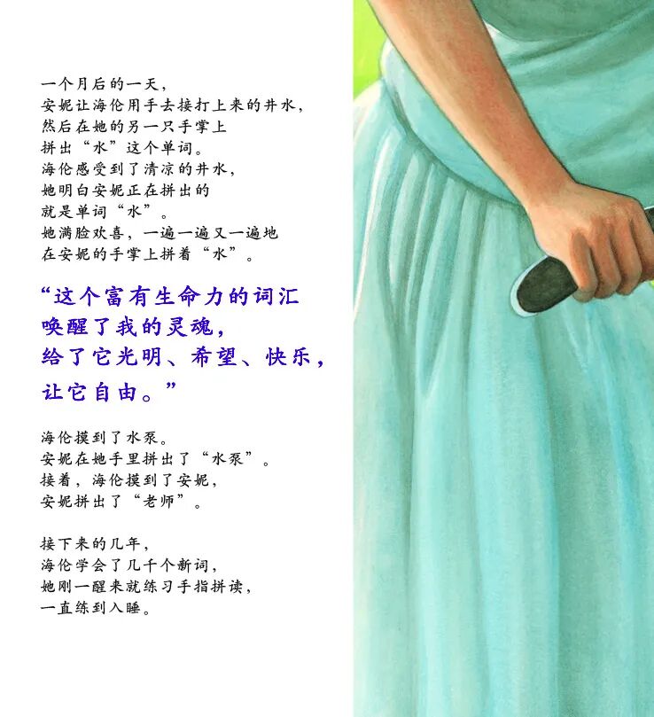 海伦·凯勒说:“她慈爱的抚摸,激活了我身上所有的天赋,所有的灵感,所有的快乐。”
