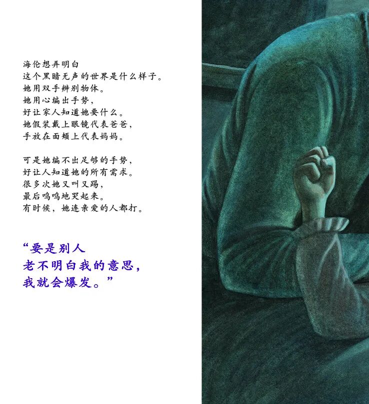 当安妮·沙利文见到海伦·凯勒时,这个7岁的小女孩看不见,听不到,也说不出话。因为无法让周围的人理解自己的意思,海伦常常大发脾气,甚至,连最亲爱的人都打。