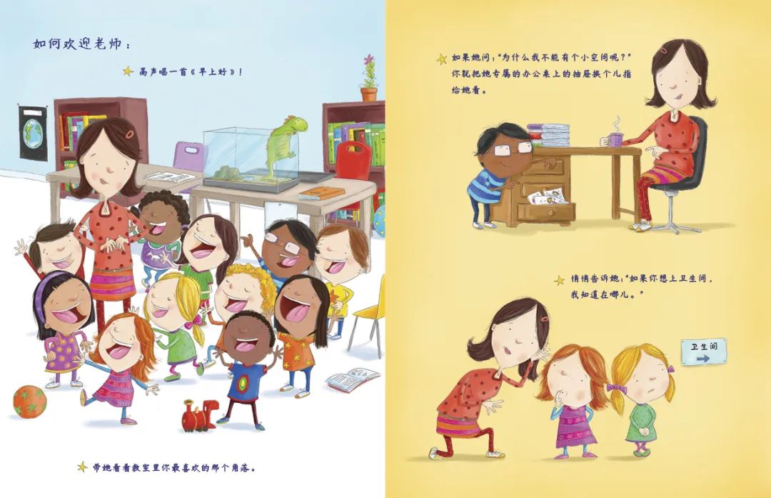 如果是新老师,她也需要一个大大的笑容来鼓励她。她也需要有人告诉她卫生间在哪里,午餐什么最好吃。