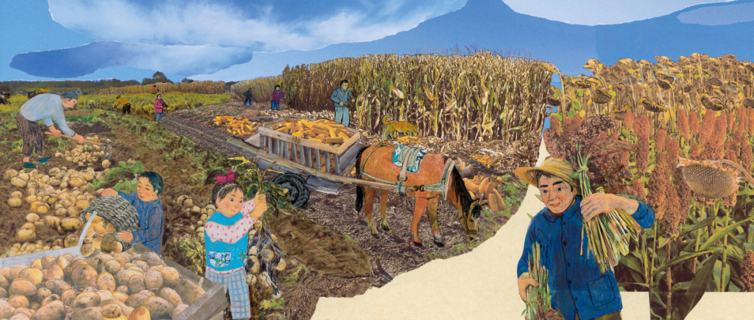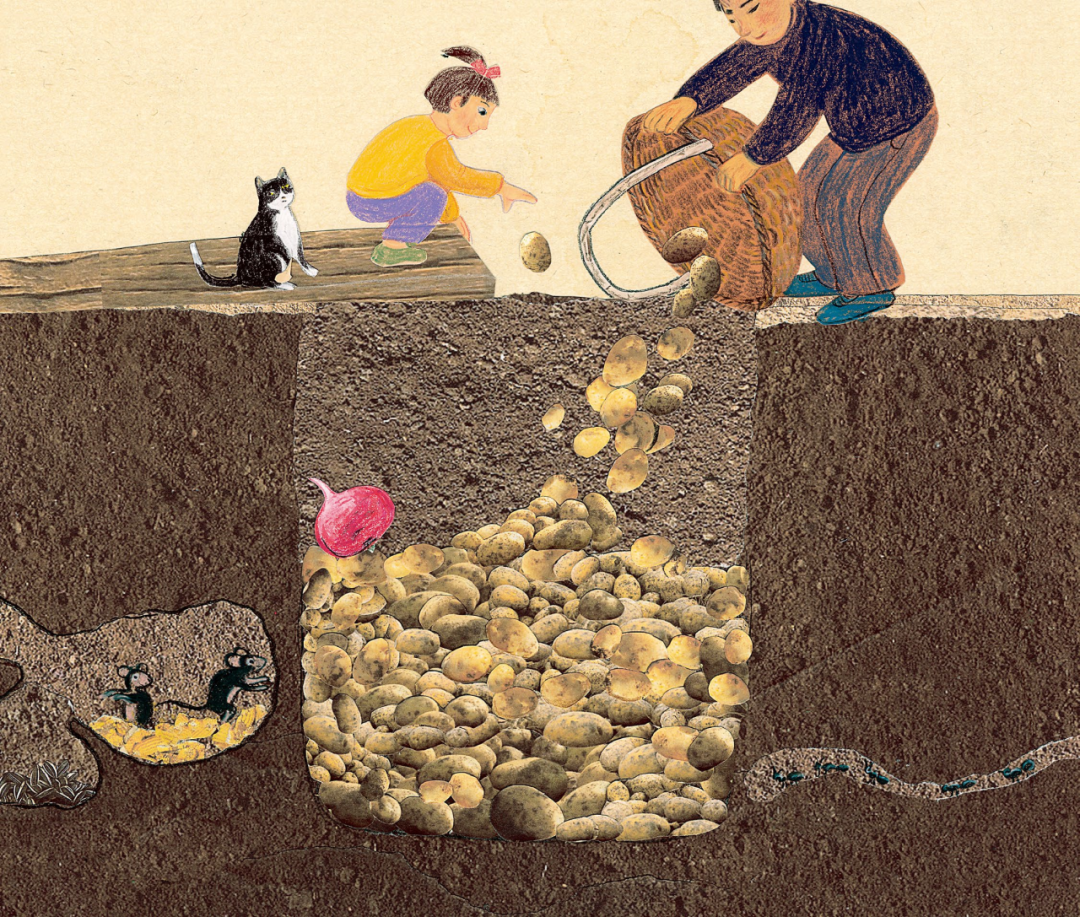 院子里堆满了粮食,爸爸忙着将土豆藏进地窖,妈妈和奶奶则在大缸里酿制酸菜,为即将到来的冬天做准备。