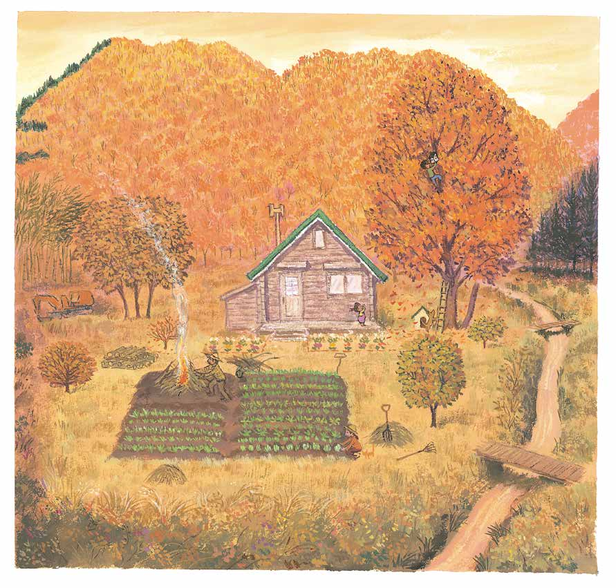 小木屋的主人,从树上把鸟箱子取下来清扫里面的垃圾,准备给明年新出生的鸟儿用。这是深山中秋天的故事,是生命的轮回,也是自然的故事。