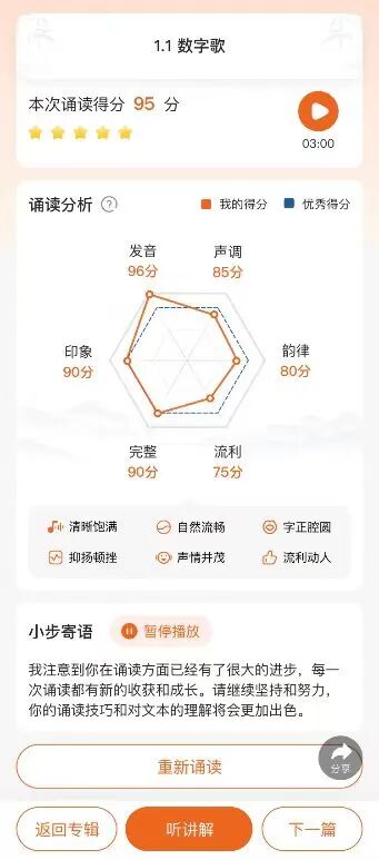 我们还可以借助【小步诵读】,让孩子听完示范,自己读读看。