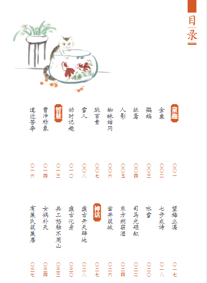 例如《故事》中的神话单元,《博物》中的巧工、雅艺单元,《名篇》中的《橘颂》、《禹之禁》等等这些流传千古的故事和名句名篇,意蕴丰厚,让孩子在潜移默化中濡染中国文化的精神和智慧。