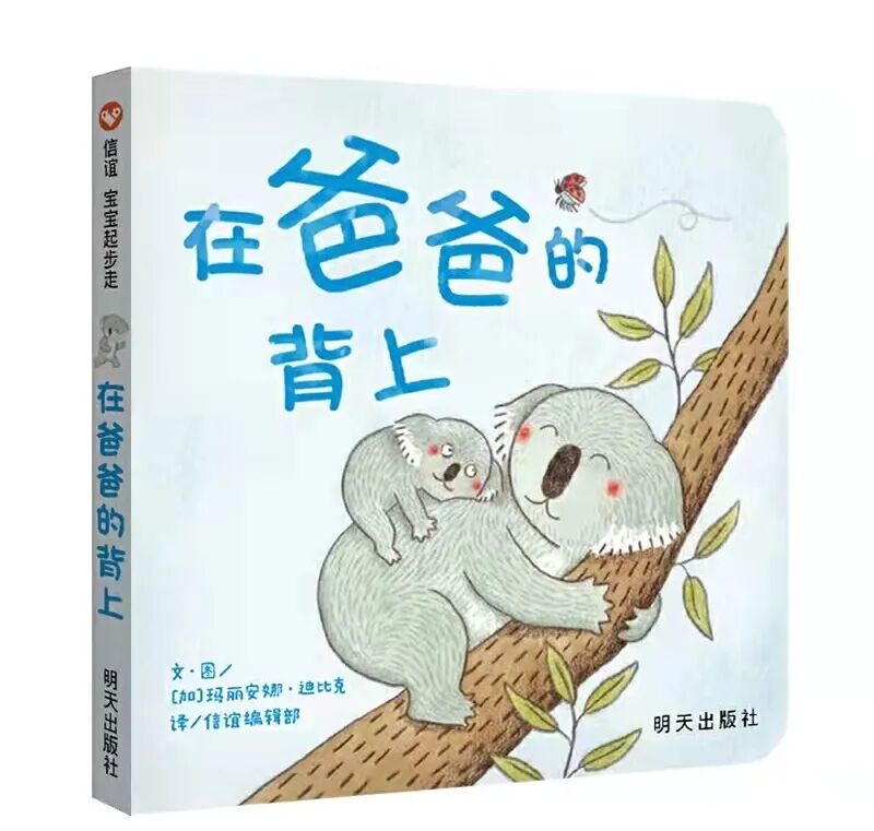 《在爸爸的背上》是一本由加拿大作者玛丽安娜·迪比克(Marianne Dubuc)创作的温馨绘本。这本书讲述了一只呆萌可爱的小无尾熊和它的爸爸之间的亲密关系。小无尾熊每天都幸福地黏在爸爸的背上,无论是吃东西、玩球,还是不小心尿尿,爸爸总是耐心地照顾着它,甚至背着它去洗澡。