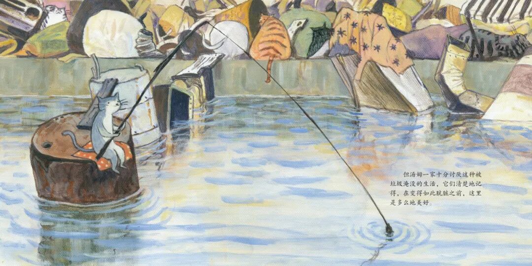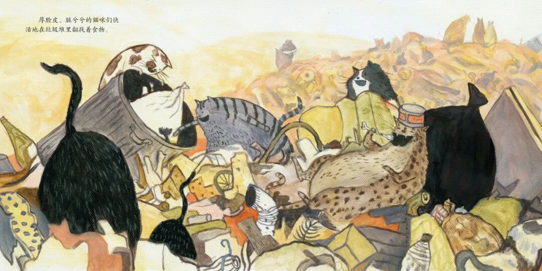 这本书讲的是一群猫咪的故事,它们生活在一座小岛上,每天都过得很快乐。有一天,猫咪们被欲望冲昏了头脑,和人类签了一份协议,同意人类将垃圾投放到小岛上。