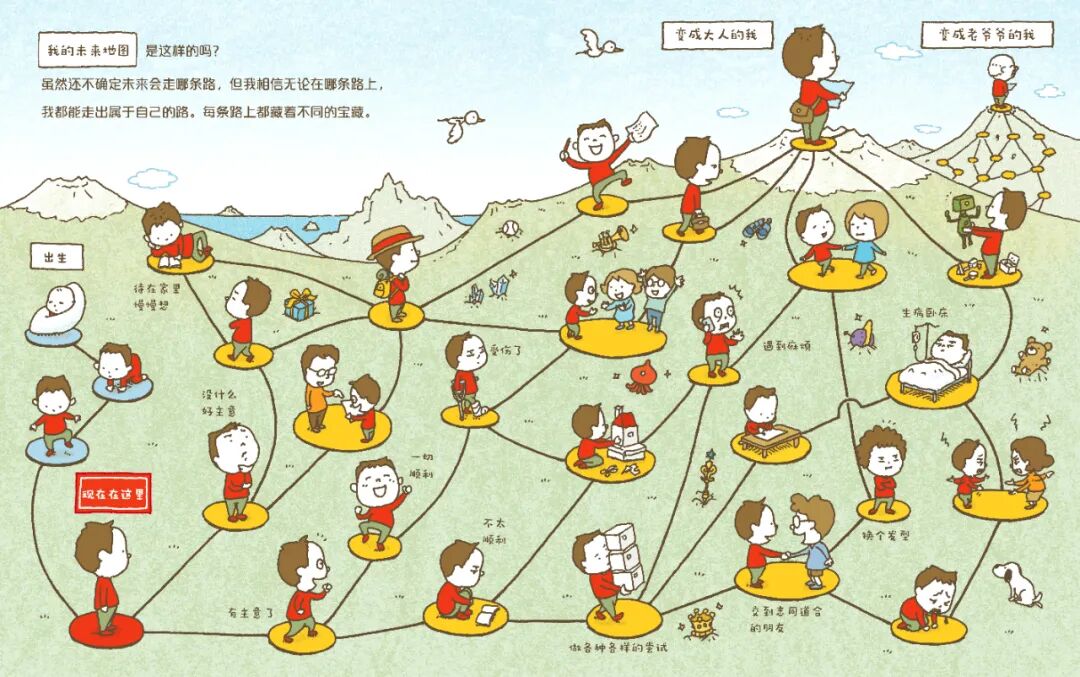 如果说“地图”就是把复杂的信息画成图,让人一下子就明白,那地图其实有很多很多种:楼层导览图、积木组装图、藏宝图、身体内部构造图……把时间画成图是什么样的?怎么用图向外星人介绍人类?我今天的心情可以画成图吗?我的未来地图,又是什么样的呢?