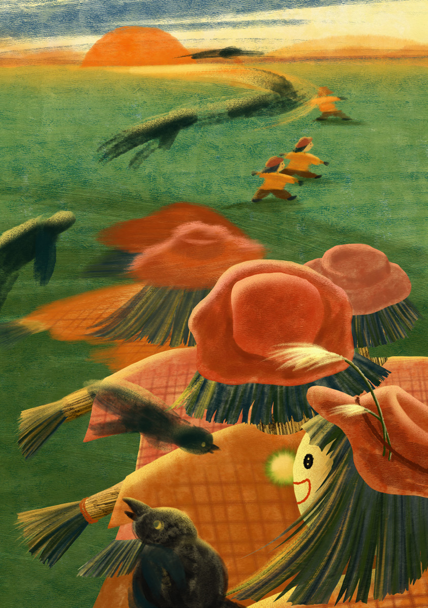 对于一个喜欢沉思的孩子来说,台风天是一种特殊的存在。它不仅会伴随狂风暴雨,毁坏农田果园,也提供了一个不同于平时的视角,让孩子可以近距离观察一次台风来去的过程。在这一过程中,有爸爸身为一家之主的努力与辛劳,有孩子以自己的方式为家人提供的小小帮助,还有村民面对农田被淹后的无奈与淡然,以及台风带来的“惊喜”——一只白色的幼鸟。