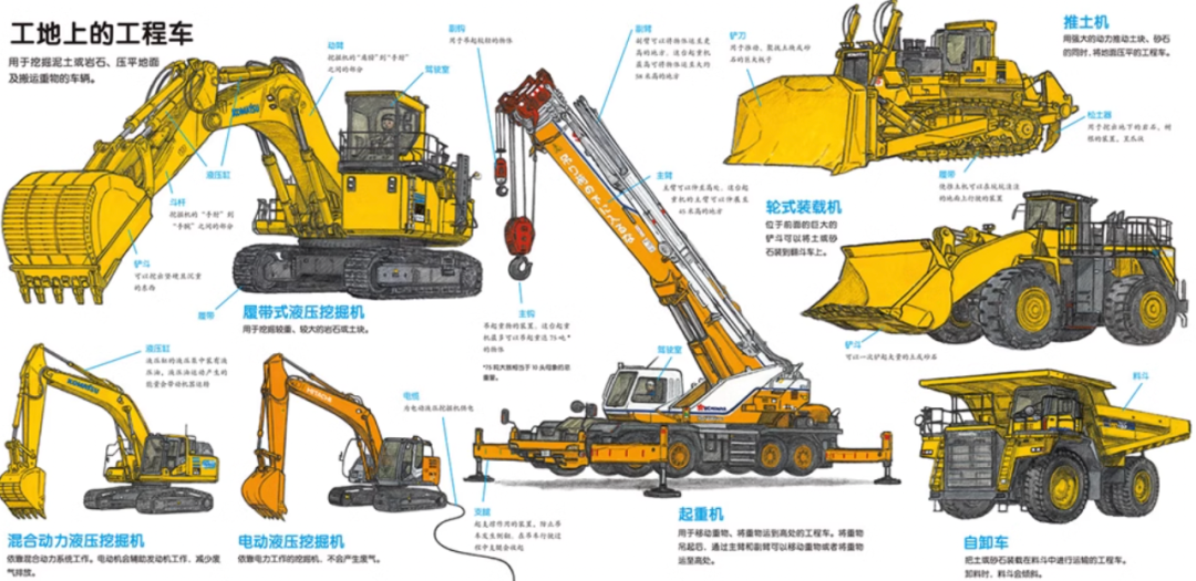不但可以让孩子认识各种工程车,还可以详细了解它们的工作原理。