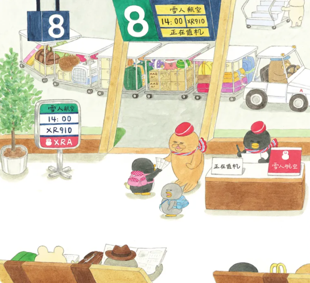 绘本的主人公是一对小企鹅姐弟,他们乘坐火车、轮船、飞机、巴士四种交通工具去不同的地方,看到不同的风景。