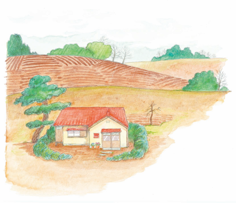 在远处的田野中有一座房子。
