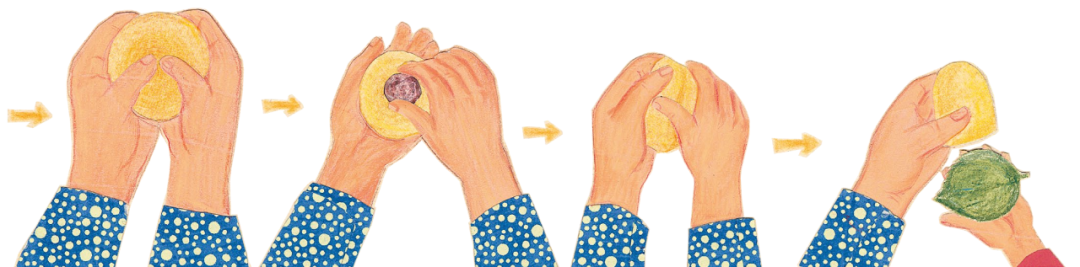 再团成小丸子。