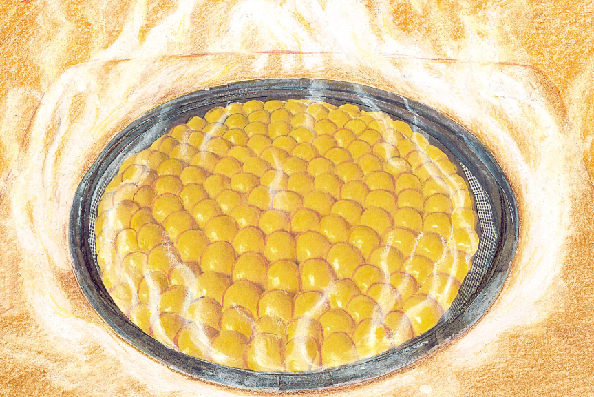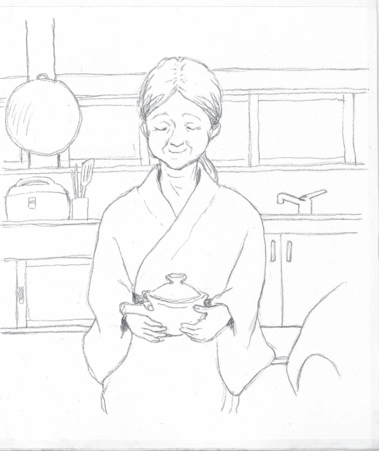 砂锅一放到火上,就会从嘴儿里噗哧、噗哧地往外冒白气,整个家里都充满了一种香味,让老奶奶想起了从前的往事。