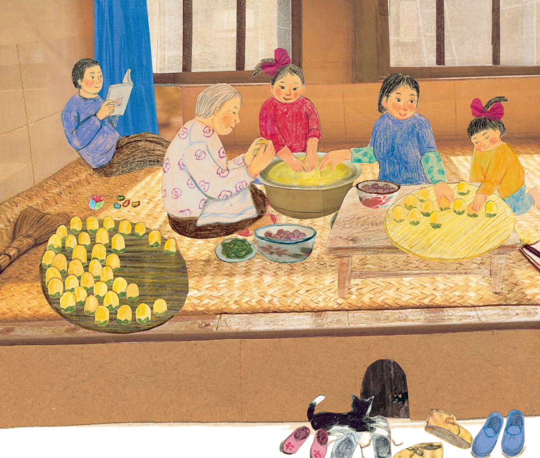 奶奶和妈妈就要准备做黏豆包了。
