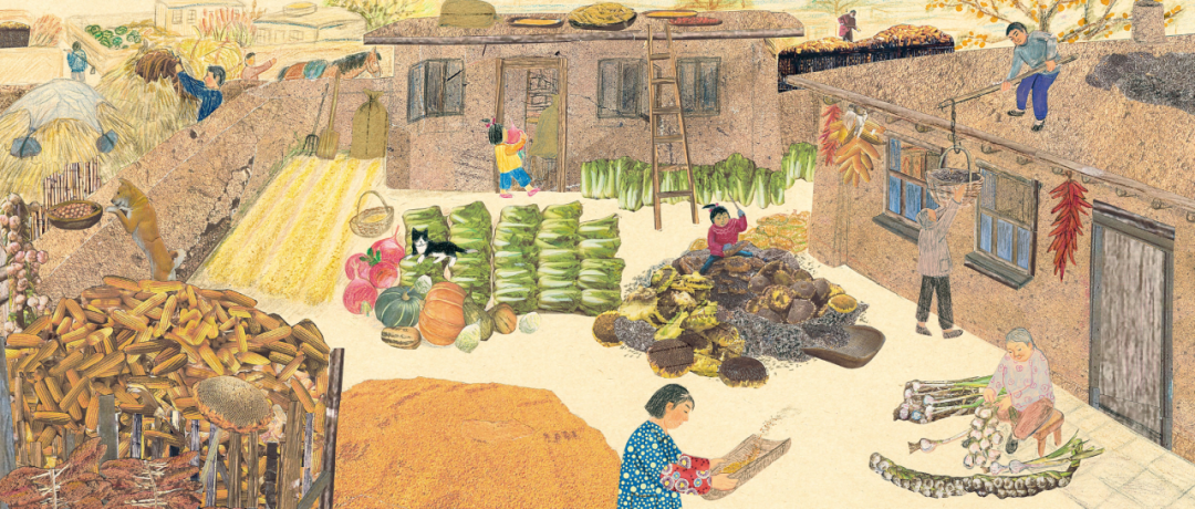 秋收过后,东北小屋的院子里堆得满满登登。