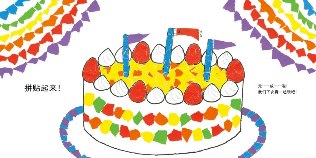 作为综合型的画画绘本,全书提供了126个画画灵感,包括撕纸画、印章画、拓印画、对印画和吹管画。一本一个主题,用讲故事的方式把相应的主题画从易到难玩个遍。最巧妙的是全书没有一处在讲“颜色、线条、形状、肌理、空间”,却处处暗含颜色搭配、原色次色;疏密线、螺旋线、虚实线等长短形状不一的线条;凹凸不平的、粗糙的、光滑的各种肌理;圆形、方形、有机形状等不同的形状。孩子虽然不懂,但是在潜移默化中就感受到了艺术,并且会在看完书后乐此不疲地玩颜料、玩撕纸、玩吹画、玩拓印。