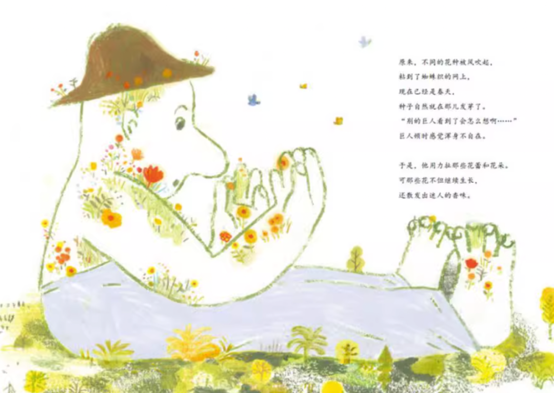 直到有一天,小小的蜘蛛出现了……巨人的小房子轰然倒下,巨人不得不踏上寻找新家的旅程。