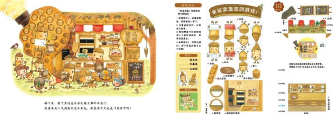 翻开绘本可以看到,在忙忙碌碌的壳斗村里,生活着一群圆鼓鼓、戴着可爱帽子的小坚果,每一颗都有不同的个性!他们有些人想开店,有些人想当老师、当警察、建房子……