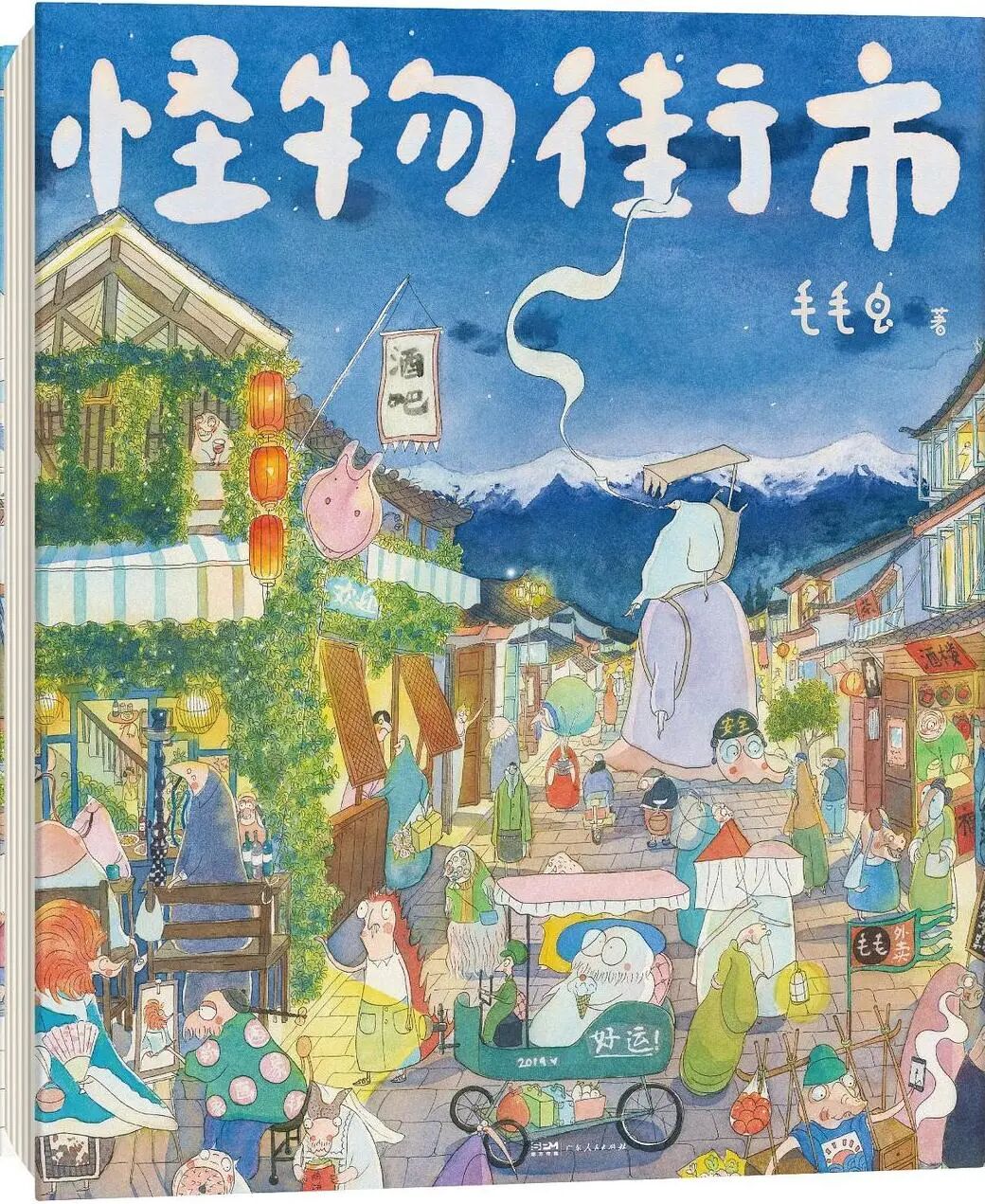 清晨,朝霞满天,怪物们熙熙攘攘,在早市的蔬菜摊、水果摊、鲜花摊前流连忘返;中午,烈日当头,怪物大叔在树荫下修鞋,怪物爷爷在弹棉花店里歇晌;午后,日渐西斜,街道上铺满暖暖的、长长的怪物影子;傍晚,将晚未晚,星月初现,市声渐起,夜色渐浓……