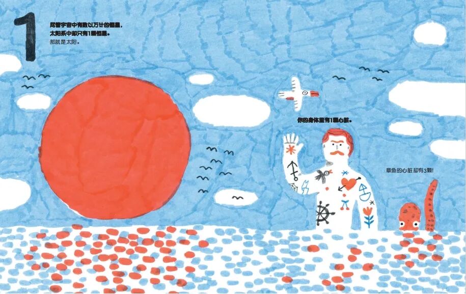 " 如果说数学是最容易让孩子望而却步的一门学科,那么这本书用最温柔的方式,打破了数字的冷峻外壳。它用'0'开启整本书的奇妙之旅——从'什么都没有'到'万物之始',从章鱼没有骨头的冷知识,到0前加一个1就能变成10的妙趣横生……这本书真正的魅力,在于它构建了一种'生活即数学'的逻辑图景:1是太阳、2是花生、8是水熊虫的脚,连法国人对奶酪的热爱都用'8亿千克'来丈量。"