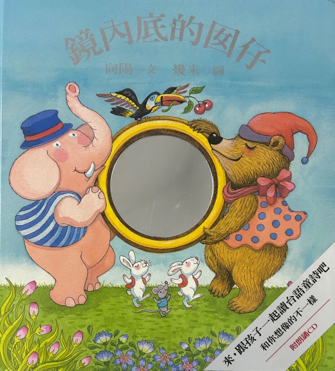 《镜内底的囡仔》是我2014年和笑笑去台湾旅游时购买的。当时买它不是为了读童谣,而是因为图画是几米创作的。台湾的童谣跟我们闽南语是非常接近的,我带笑笑两趟去台湾的自由行,遇到需要讲闽南话的时候,沟通无障碍。这本书后来内地也引进了,可是却失去了闽南语的风格和味道,从标题就可以看出《镜子里的小孩》,变成了一本用普通话创作的“童诗”“歌谣”,真是可惜!我买的这本台版绘本,有赠送了一张朗诵的CD,今年暑假我特意让好友转成了MP3,有10首。