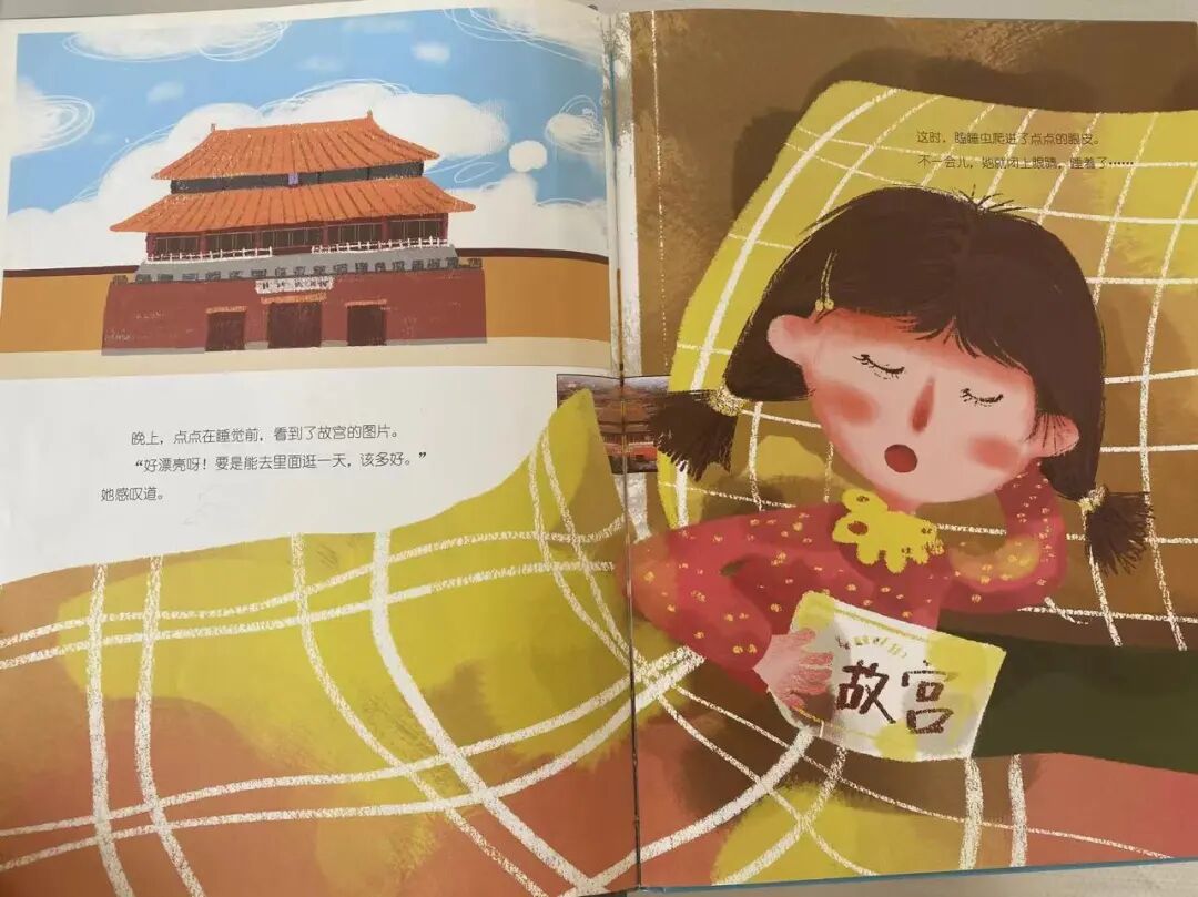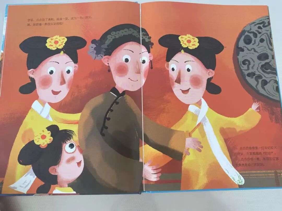 它是以小女孩点点做了一个梦,梦里自己到了清朝,变成了故宫里的一个小宫女为故事开头。以点点的视角,讲述了她所看到的故宫。