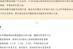 让我们携手,把科学养育和早期阅读的理念和价值,变成每个家庭亲子共读的温暖日常;用专业与爱心,陪伴更多孩子走向更明亮的未来。
