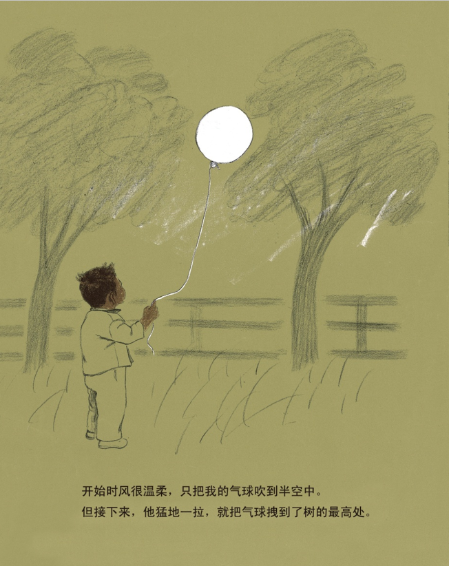 书里的男孩对风说:“你来把我的气球吹走吧。”这不是抱怨,是邀请。而风,接受了邀请。故事里,男孩叫戈贝托。风为他送来好吃的苹果。风帮他的小船扬帆起航。但风也会跟他闹着玩:抢走他的雨伞,不帮他放风筝,有时候还狂风大起,像个控制不好力气的朋友。可戈贝托从不把风关在门外。他教风转风车。他给风吹泡泡。他始终相信:风喜欢和我玩。